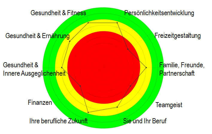 Ermitteln Sie über den Online Fragebogen Ihre eigenen Werte für die 10 verschiedene Lebensbereiche.